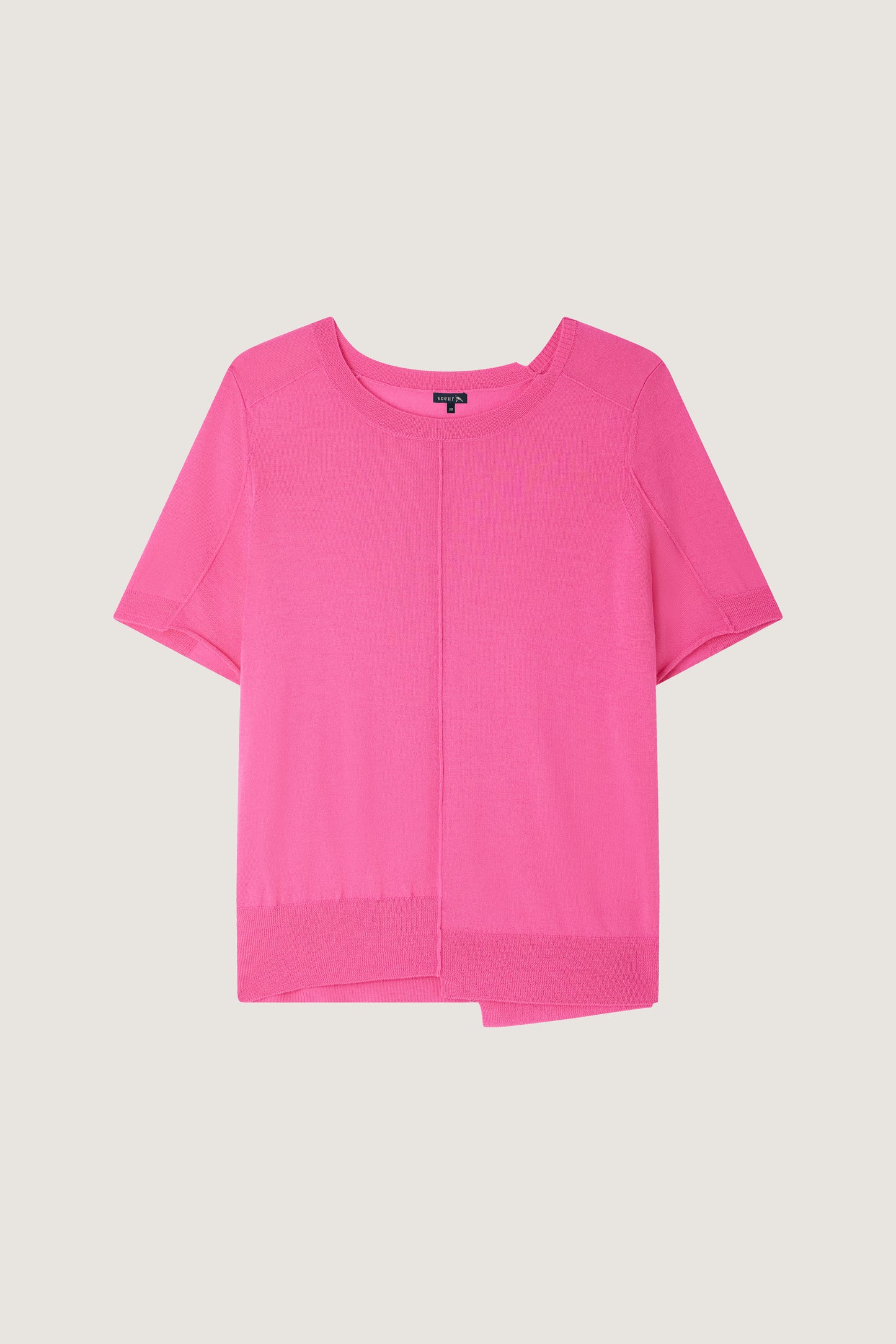 azul jumper Pink short-sleeved extra-fine gauge merino wool jumper with asymmetrical trims