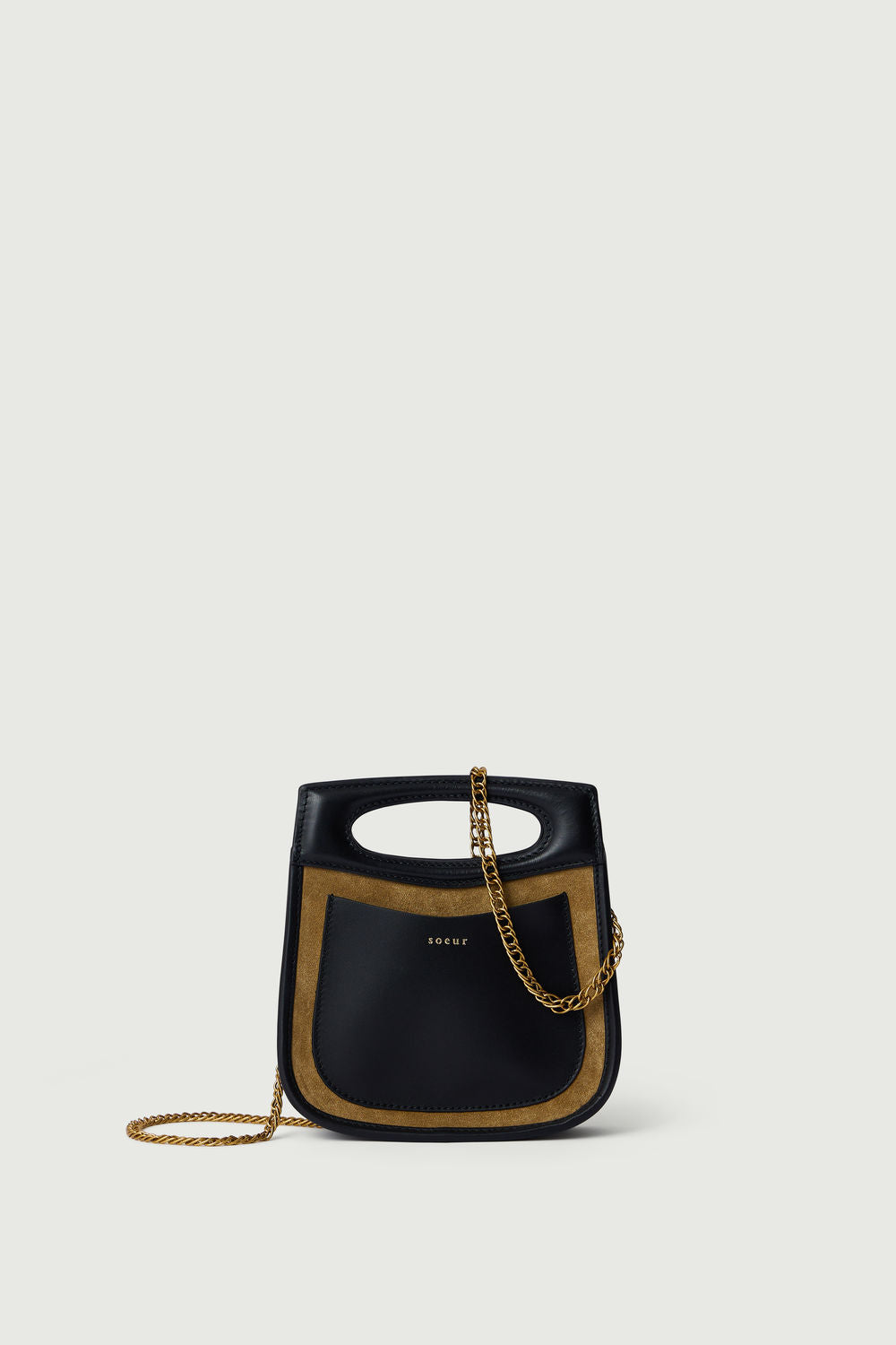 cheri mini bag Two-material bag in bronze split leather and smooth black leather
